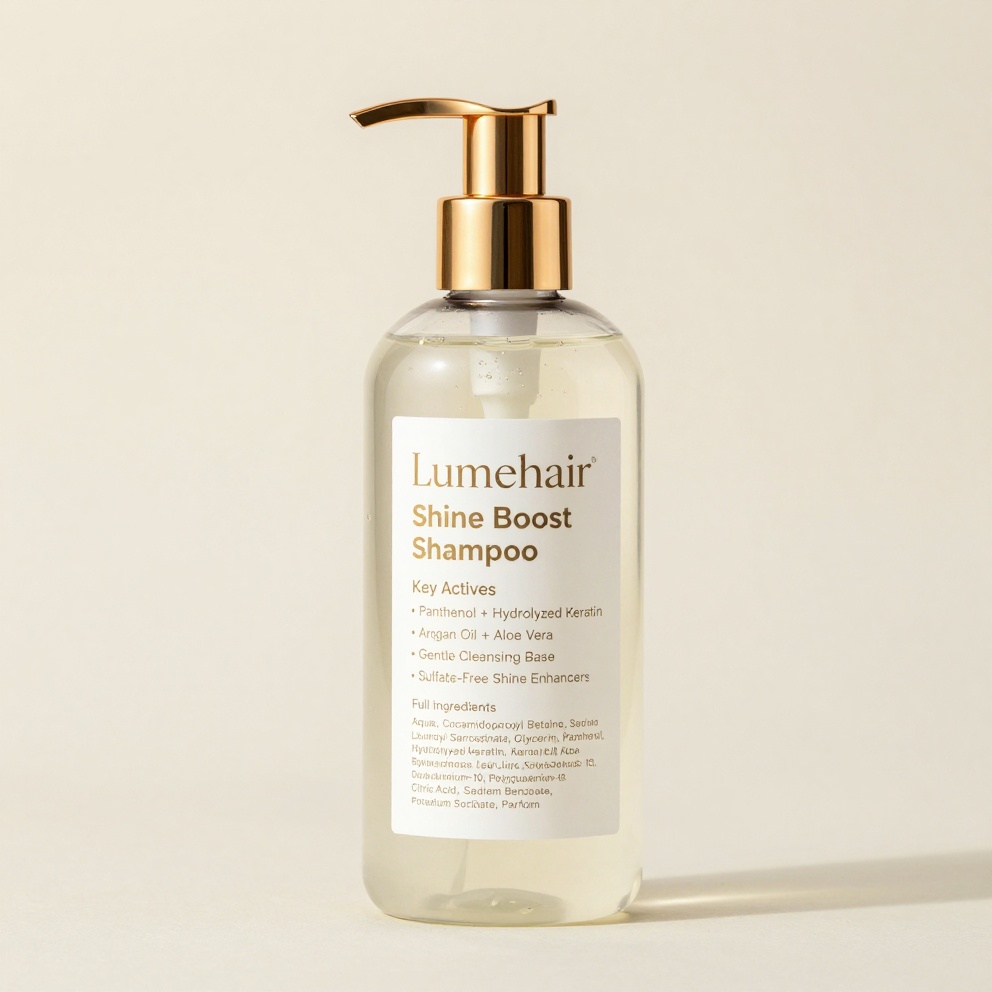 Lumehair Shine Boost Shampoo is your everyday glow starter — a gentle, sulfate-free formula that cleanses without stripping, enhances natural shine, and preps hair for luminous results. Infused with light-reflecting actives for instantly brighter, healthier-looking strands. Perfect for all hair types seeking that salon-fresh radiance on a budget.